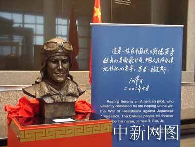 今天下午,趙啟正在銅像揭幕儀式上致詞說:中國人為年輕的?怂乖O(shè)計、鑄造了銅像。中國國家主席江澤民也為銅像親筆題詞:“這是一位在中國抗日戰(zhàn)場英勇獻(xiàn)身的美國飛行員。中國人民將永遠(yuǎn)記住他的名字——吉米·福克斯!