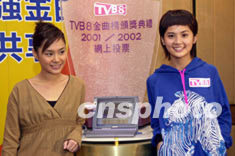 樂壇組合Twins兩位成員鍾欣桐、蔡卓妍10月23日在香港出席《TVB8金曲榜頒獎(jiǎng)典禮2001/2002》記者會(huì),Twins在網(wǎng)上向喜愛的歌曲投票。鄧慶樂 攝