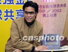 歌星蘇永康10月23日在香港出席《TVB8金曲榜頒獎(jiǎng)典禮2001/2002》記者會(huì),為《TVB8金曲榜頒獎(jiǎng)典禮2001/2002》在網(wǎng)上為喜愛的歌曲投票。鄧慶樂 攝