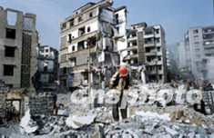 三峽導(dǎo)流明渠截流在即,重慶奉節(jié)舊縣城四十多棟高樓,在陣陣炮聲中夷為平地,僅一個(gè)秋季就拆除清理了一百一十八萬平方米的舊樓盤。作者:李中全