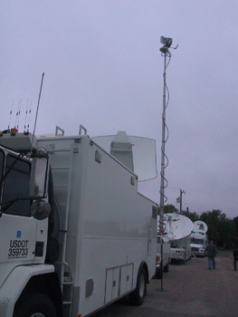 此時(shí),中午已近,記者們顧不上休息,紛紛伏案“作業(yè)”,臨時(shí)“征用”作新聞中心的中學(xué)教室內(nèi)外一派忙碌,四、五輛衛(wèi)星轉(zhuǎn)播車正在發(fā)射電視畫(huà)面,江澤民作客布什牧場(chǎng)、中美兩國(guó)元首第三次會(huì)晤的新聞已迅速傳播到世界各地。