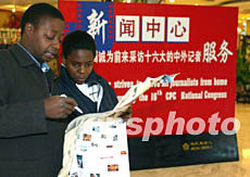 在北京梅地亞中心的中共“十六大”新聞中心準(zhǔn)備就緒,工作人員已開(kāi)始進(jìn)駐,并準(zhǔn)備投入正常接待工作。毛建軍 攝