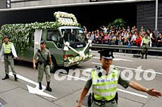 中新網(wǎng)10月30日電 一代巨星羅文29日出殯,儀式在下午1點(diǎn)舉行,數(shù)百位羅文生前至親好友,以及在殯儀館門外手持鮮花的歌迷,懷著沉痛而依依不舍的心情,陪伴一代歌圣走完最后一段旅程。