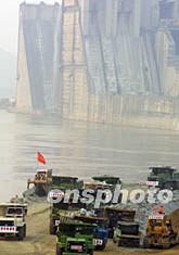 圖:三峽大壩截流工地緊張有序