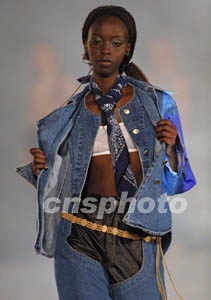 黑人模特展示美國設計師唐克蘭朵·迪斯利蒲的性感個性牛仔裝。