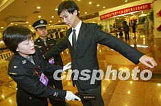 圖為公安人員在代表駐地進(jìn)行嚴(yán)格的安檢,以確保安全。