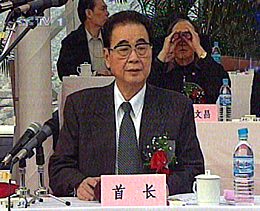 李鵬出席三峽導(dǎo)流明渠截流儀式。