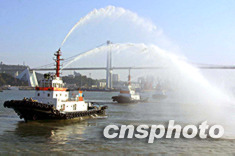 廈門(mén)港日前舉行海上消防演練,出動(dòng)六艘全回轉(zhuǎn)拖輪在海天碼頭海域進(jìn)行搶險(xiǎn)應(yīng)急演練。作者:鄭憲