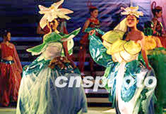 六日晚在福州舉行的“奮飛吧八閩健兒”文藝晚會(huì)上,身著“茉莉花”造型時(shí)裝的模特,展現(xiàn)“芬芳滿園”。作者:劉可耕