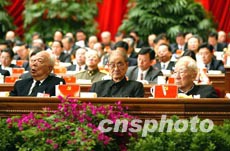 中國(guó)共產(chǎn)黨第十六次全國(guó)代表大會(huì)八日上午在北京人民大會(huì)堂舉行,萬(wàn)里、宋平、薄一波(從左至右)等老同志在主席臺(tái)就座出席開幕會(huì)。作者:毛建軍