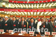 李鵬宣布大會(huì)開(kāi)始,全場(chǎng)起立高唱《國(guó)歌》,然后全體與會(huì)人員為毛澤東、周恩來(lái)、劉少奇、朱德、鄧小平、陳云等已故的老一輩革命家默哀。