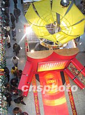 在十六大召開期間,北京圖書大廈設(shè)立了十五大以來中國(guó)經(jīng)濟(jì)建設(shè)成就圖片展覽,吸引了大批北京市民參觀。圖為設(shè)計(jì)別致的展臺(tái)。作者:廖文靜