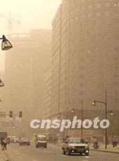 中新網11月11日電 因受蒙古氣流影響,吉林省今天出現(xiàn)揚沙浮塵天氣,整個長春市彌漫在昏黃之中,對交通和市民出行產生了較大的影響。