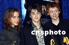 11月10日,“哈利·波特”系列影片第二集--《哈利·波特與密室》在美國紐約舉行首映式。圖為參加首映式的該片三位小主演,從左至右依次是:艾瑪·沃特森、丹尼爾拉德克利夫和魯伯特·格林特。Ic/cnsphoto 攝