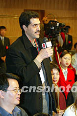 在梅地亞賓館中共十六大新聞中心,此前舉行過(guò)三場(chǎng)記者招待會(huì),有關(guān)人士就經(jīng)濟(jì)發(fā)展、社會(huì)保障、西部開發(fā)等問(wèn)題接受了記者的采訪。今天是最后一場(chǎng),又時(shí)值中國(guó)加入世界貿(mào)易組織一周年,記者采訪高潮迭起。(完)