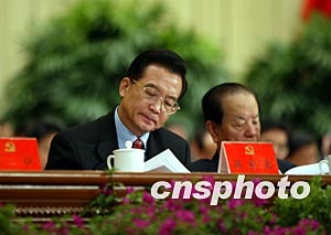 圖:溫家寶出席十六大閉幕會