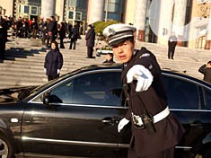 中共十六大十四日在北京人民大會堂閉幕,首都交通民警全力以赴保障交通暢通。作者:劉英毅