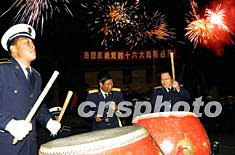 駐守浙江東部的海軍部隊(duì)官兵舉行焰火晚會(huì),敲鑼打鼓慶祝中共十六大圓滿閉幕。作者:喻嵐