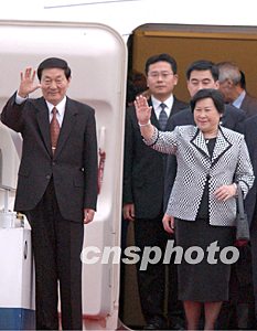 中國國務(wù)院總理朱镕基和夫人勞安,11月18日下午乘坐專機抵達香港參加“第十六屆世界會計師大會”。