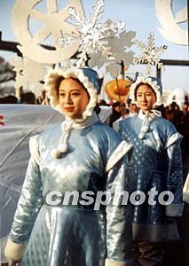 圖:哈爾濱模特穿冬裝巡走步行街