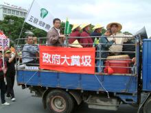 臺農(nóng)漁民斥"財政部"="垃圾部" 扁坐官邸靜觀游行