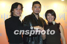 中國內(nèi)地設計師曲汀南(左一)、香港設計師鄧達智(左二)、臺灣設計師李小燕二十三日在北京聯(lián)手舉行新聞發(fā)布會,他們將在中國國際時裝周上奉獻來自中國內(nèi)地與香港、臺灣設計師的精品服飾作品。作者:毛建軍
