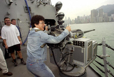 圖文:成龍參觀美國(guó)軍艦 向維多利亞港“發(fā)炮”