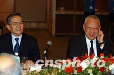 香港特區(qū)第十屆全國人大代表選舉會議主席團(tuán),十一月二十五日在香港舉行會議,確認(rèn)七十八位候選人。香港特首董建華與全國人大常委會秘書長何椿霖(左)出席該會并聽取參選情況匯報。潘索菲攝