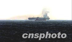 圖:巴拿馬籍萬噸液化氣輪仍在冒煙