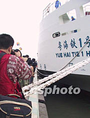 潔白的“粵海鐵一號”,遠看與海南百姓見識多了的海輪并無二致:一百六十五點四米的船身,顯得非常修長。進入港池的巨輪向左緩緩轉(zhuǎn)向,忽然人群中發(fā)出一陣歡呼,碼頭上的鞭炮開始熱烈爆響——因為,在船的側(cè)身,巨大的中鐵標(biāo)志終于展現(xiàn)在海南人民眼前。從此,坐著火車上北京不再是難以實現(xiàn)的夢想。
