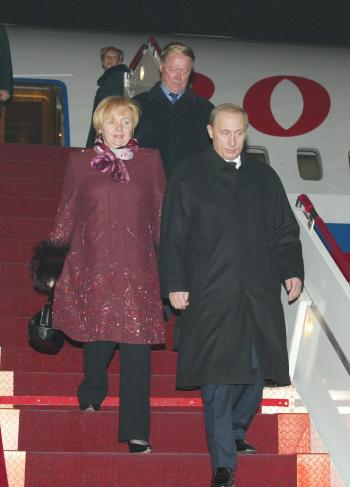 中國(guó)外交部副部長(zhǎng)劉古昌、中國(guó)駐俄羅斯大使張德廣和夫人鄭淑蘭、俄羅斯駐華大使羅高壽等在專(zhuān)機(jī)舷梯旁迎候普京一行。普京總統(tǒng)夫人普京娜等陪同人員同機(jī)抵達(dá)。兩名中國(guó)女青年在機(jī)場(chǎng)向普京總統(tǒng)夫婦獻(xiàn)花。
