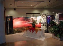 在中國(guó)的展臺(tái),外層設(shè)有照相機(jī)鏡框形狀的白色門(mén)框,蘊(yùn)涵“聚焦”之意。在門(mén)框上,還做成了一個(gè)激光豎琴,手指撥動(dòng)激光束便能聽(tīng)到動(dòng)聽(tīng)的旋律。今天一位中國(guó)姑娘將在這里演奏中國(guó)申博宣傳片的主題曲———《好一朵美麗的茉莉花》。