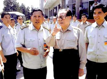 1999年1月5日,江澤民走進(jìn)作戰(zhàn)模擬大樓,觀看國(guó)防大學(xué)研制開發(fā)的“戰(zhàn)略決策訓(xùn)練系統(tǒng)”和“戰(zhàn)役指揮訓(xùn)練系統(tǒng)”。