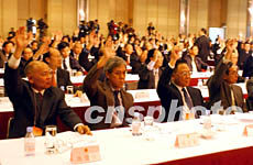 會議首先以舉手表決的方式通過了總監(jiān)票人、監(jiān)票人名單。總監(jiān)票人為曹其真,監(jiān)票人為:容永恩、唐志堅、黎振強(qiáng)、霍麗斯、顏延齡。