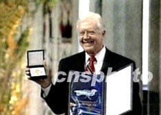 圖:美國前總統(tǒng)吉米·卡特領(lǐng)取諾貝爾和平獎(jiǎng)