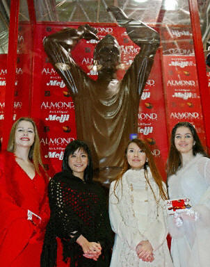 在日本東京市中心,一座三米高的貝克漢姆雕像揭幕,不過雕像不是石雕,也不是銅雕,而是用巧克力做成的。