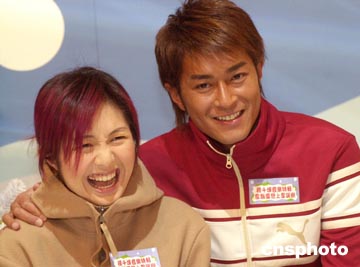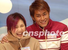 當(dāng)古天樂搭著楊千樺之肩膊合照時,千樺情不自禁展露燦爛笑容。