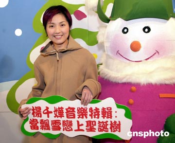 歌星楊千樺12月17日在香港出席其音樂特輯“當(dāng)飄雪戀上圣誕樹首映禮”。楊千樺、古天樂等早前為該音樂特輯遠赴日本北海道取景拍攝,并將在本月22日晚于翡翠臺播映。鄧慶樂攝