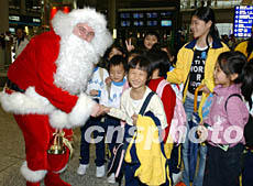 香港機場為營造圣誕節(jié)日氣氛,十二月二十日推出圣誕老人與旅客同樂活動,成為香港機場一道節(jié)日風(fēng)景。潘索菲 攝