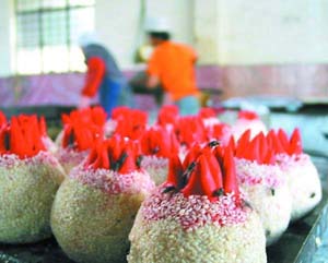 中新網(wǎng)12月21日電 前天,廣東省衛(wèi)生監(jiān)督所依法查封了江門(mén)市新會(huì)區(qū)一家未經(jīng)衛(wèi)生部門(mén)審批而擅自生產(chǎn)煎堆的無(wú)證工場(chǎng),并責(zé)令老板追回銷(xiāo)售到各地的煎堆,同時(shí),并限期將庫(kù)存的800多箱煎堆銷(xiāo)毀。
