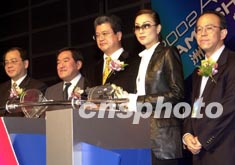 歌影紅星鄭秀文12月21日在香港出席“2002年亞洲游戲展”,與多家著名的游戲生產(chǎn)商代表一同主持開(kāi)幕典禮。中新社傳真 鄧慶樂(lè) 攝
