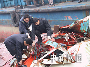 據(jù)現(xiàn)場(chǎng)所見,沉船駕駛艙被撞破損很嚴(yán)重。