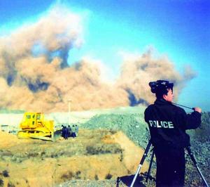 11點(diǎn)30分,爆破總指揮宣布一切正常。爆破現(xiàn)場第一次警報(bào)響起。爆破現(xiàn)場值勤民警開始檢查是否還有人員在爆破區(qū)域內(nèi)停留。一切在爆破區(qū)域內(nèi)的人員撤離至安全地點(diǎn)。16個(gè)爆破觀測點(diǎn)開始觀測。