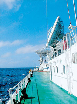 該船所在的海域,日出比北京晚2個小時。清晨,一陣急促的鈴聲響起,全體參試人員按部署就位,船上利用測控間隙組織了一次實戰(zhàn)演練。上午,當高速飛行的“神舟”四號飛船再次光臨“遠望”四號上空時,船上的測控工作一切按預(yù)定程序進行,廣大科技人員顯得有條不紊、游刃有余。