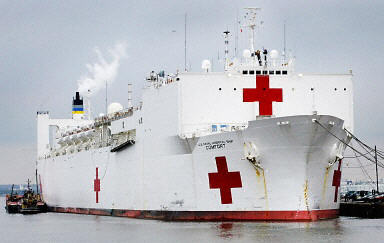 圖為美國(guó)海軍正在服役的救傷船。內(nèi)置12組手術(shù)操作室、1000個(gè)傷病床位以及X光掃描、物理治療室等完整的醫(yī)療設(shè)備供駐中東美軍使用,若美伊開(kāi)戰(zhàn),該船將作為美軍海上作戰(zhàn)群的救助醫(yī)療中心。