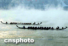 吉林龍舟賽在零下二十多度嚴(yán)寒江面上進(jìn)行
