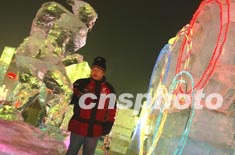 元月在哈爾濱舉行的第十九屆國(guó)際冰雪節(jié)上,一款為哈爾濱申辦二零一四年冬季奧運(yùn)會(huì)特別制作的冰雕"五環(huán)奧運(yùn)",格外引人注目。作者:毛建軍