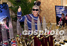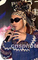 歌星陳奕迅1月7日悉心打扮出席香港的「松日Matsunichi MP3 THIRD ENCOUNTER陳奕迅演唱會(huì)」記者招待會(huì),他的歌曲「明年今日」剛奪得勁歌金曲金獎(jiǎng),圖為陳奕迅在記招上手舞足蹈難掩喜悅心情。鄧慶樂(lè) 攝