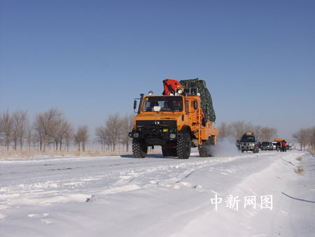返回艙從內(nèi)蒙古草原沿公路運往北京(1)孫陽 攝