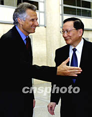 德維爾潘在俄羅斯作短暫停留后即于今日飛抵北京。這是德維爾潘于去年5月出任法國(guó)外長(zhǎng)以來(lái)首次訪(fǎng)問(wèn)中國(guó)。他10日還將轉(zhuǎn)往上海會(huì)見(jiàn)法國(guó)工商界人士,并預(yù)定就歐亞關(guān)系問(wèn)題向上海學(xué)術(shù)界發(fā)表專(zhuān)題演講。